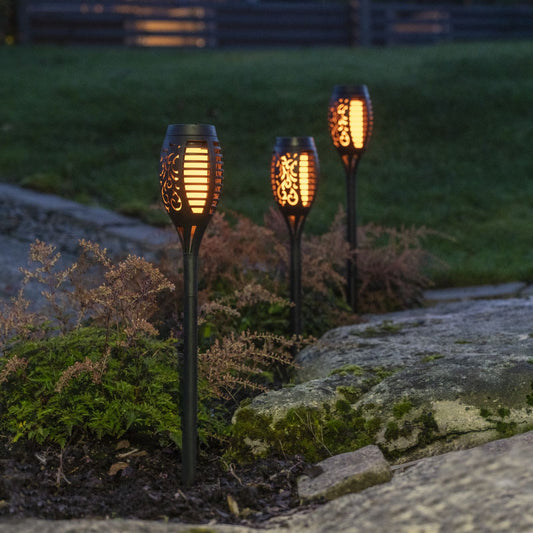 Star Trading - Solcellsbelysning - Solcellspollare 3-p Flame Mini - Svart - 40cm