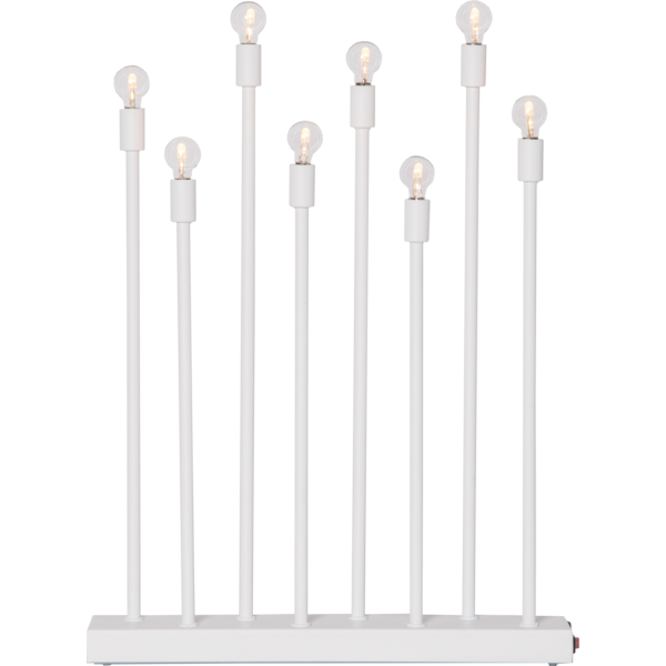 Uppladdningsbar modern adventsljusstake i metall. ljusstaken har rund led lampor som ger stämningsfullt ljus. Passar bra i ett fönster eller på en bänk eller varför inte på ett bord? Den är lätt att placera då det inte kräves något eluttag i närheten.