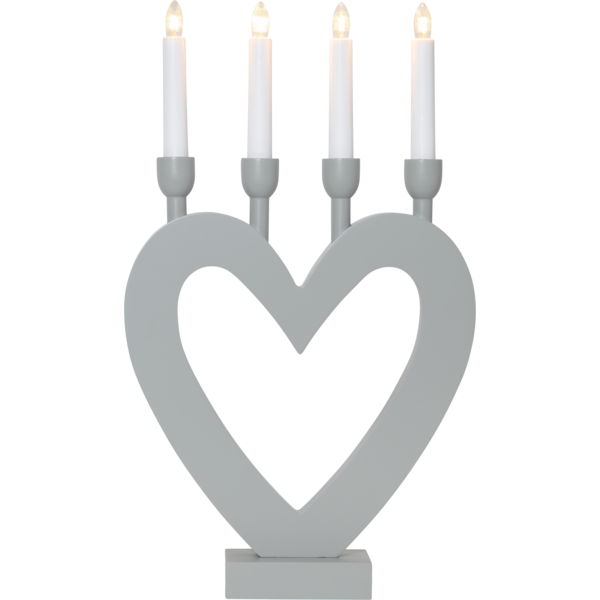 Grå träljusstake med formen av ett hjärta, 4 ljus. Placera i fönstret eller på en skänk till advent.