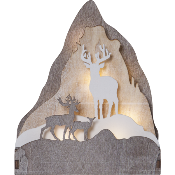 Batteridriven bordsdekoration med varmvitt sken. Dekorationen är av trä och har många fina detaljer. En underbar dekoration som sprider julstämning i hemmet.