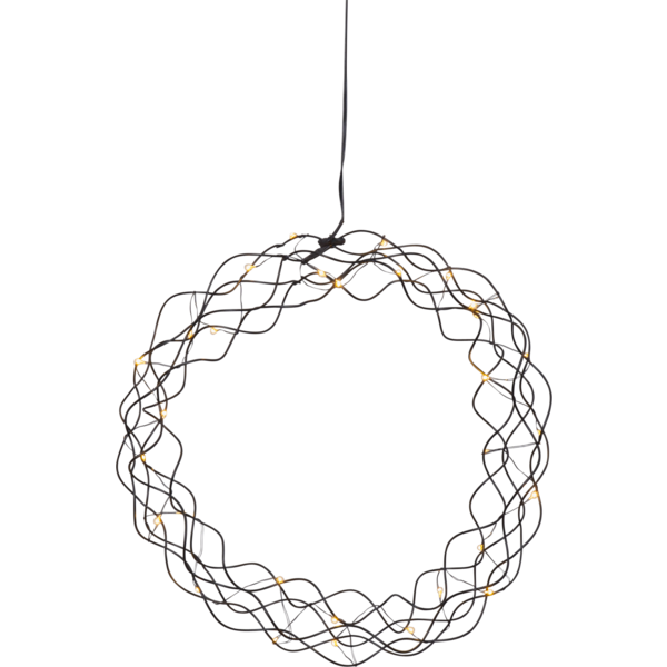 Dekorativ krans i svart med dew drop ljusslinga för inomhusbruk. Kransen har 30 LED-ljuskällor med varmvitt sken. Vacker dekoration att ha i fönstret och på väggen.
