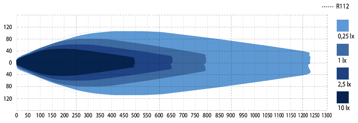 - Räckvidd: 1 lux @ 790 m / R112: 1 lux @ 460 m