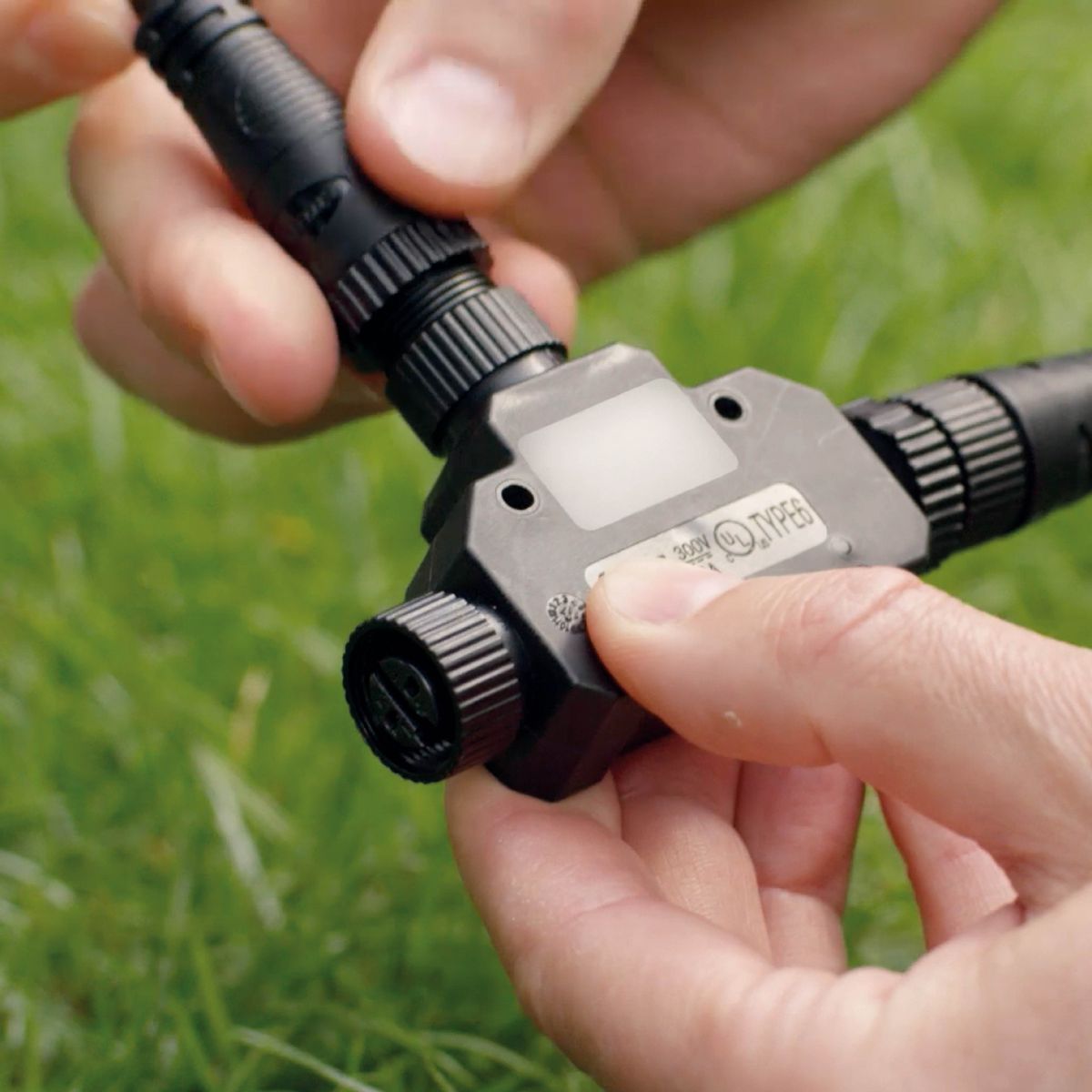 Använd T-kontakten för flexibel koppling mellan kablar för dina Philips Hue Outdoor lågvoltsarmaturer. Enkel att hantera och flytta runt för att skapa dina drömmars utomhusplats.